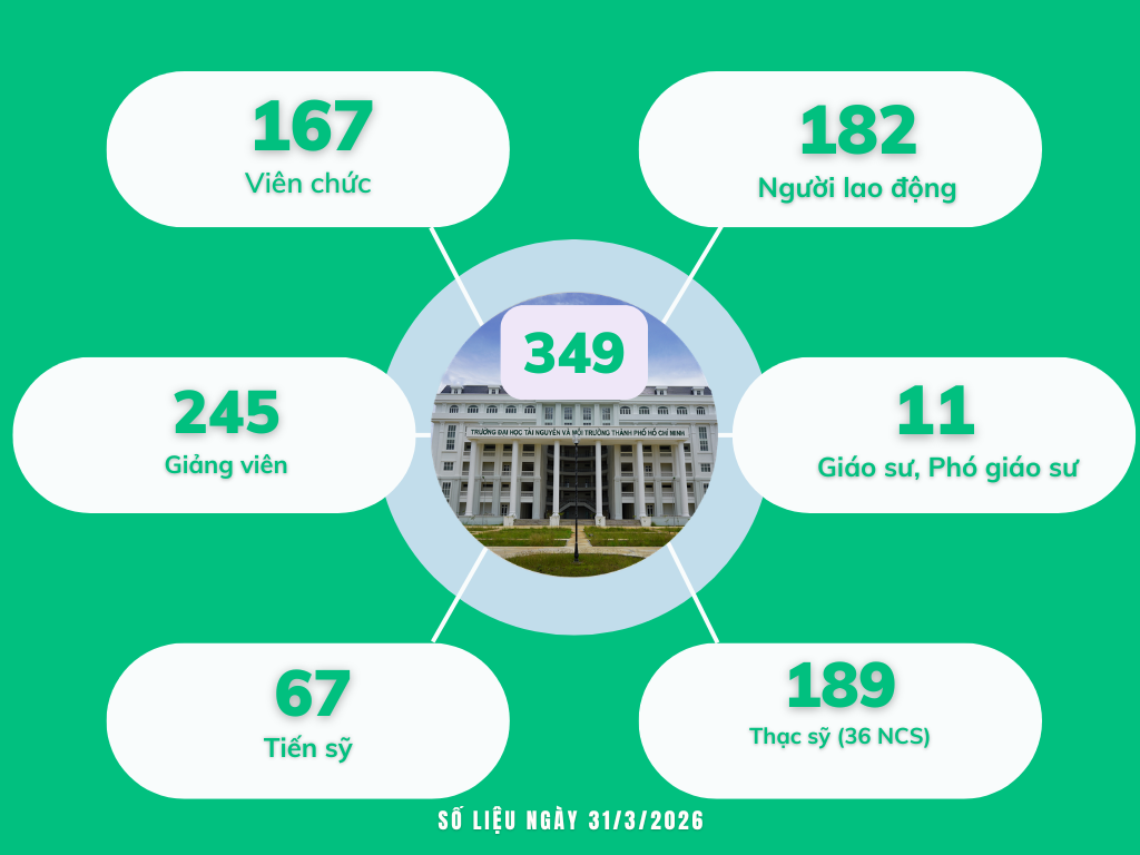 Với phương châm “SÁNG TẠO – CHẤT LƯỢNG – HIỆU QUẢ”, chương trình đào tạo được xây dựng theo định hướng liên ngành, xuyên ngành, đáp ứng nhu cầu nâng cao trình độ chuyên môn và phát triển toàn diện năng lực nghề nghiệp cho người học. Trường Đại học Tài nguyên và Môi trường TP. Hồ Chí Minh không ngừng khẳng định vị thế là địa chỉ đào tạo uy tín, nơi sinh viên được học tập, rèn luyện và phát huy tính sáng tạo trên hành trình xây dựng, hình thành nghề nghiệp của mình.