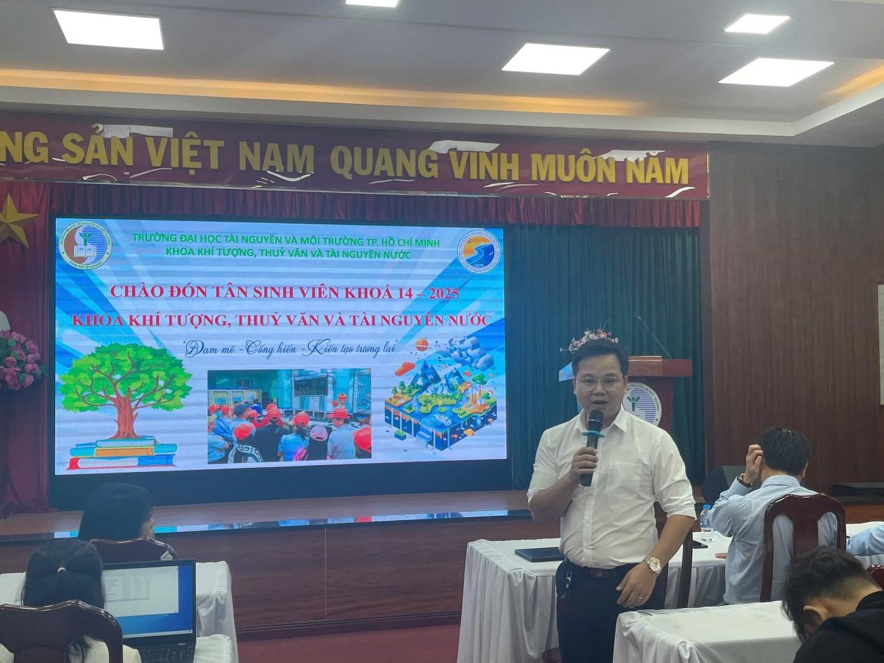 Sáng ngày 04/10/2025, Khoa Khí tượng Thủy văn và Tài nguyên nước (KTTV&TNN) – Trường Đại học Tài nguyên và Môi trường TP. Hồ Chí Minh đã long trọng tổ chức chương trình “Chào đón Tân sinh viên Khóa 14”. Buổi gặp mặt diễn ra trong không khí hân hoan, đồng thời mang ý nghĩa đặc biệt khi gắn liền với Kỷ niệm 80 năm ngày truyền thống ngành Khí tượng Thủy văn Việt Nam (03/10/1945 – 03/10/2025).