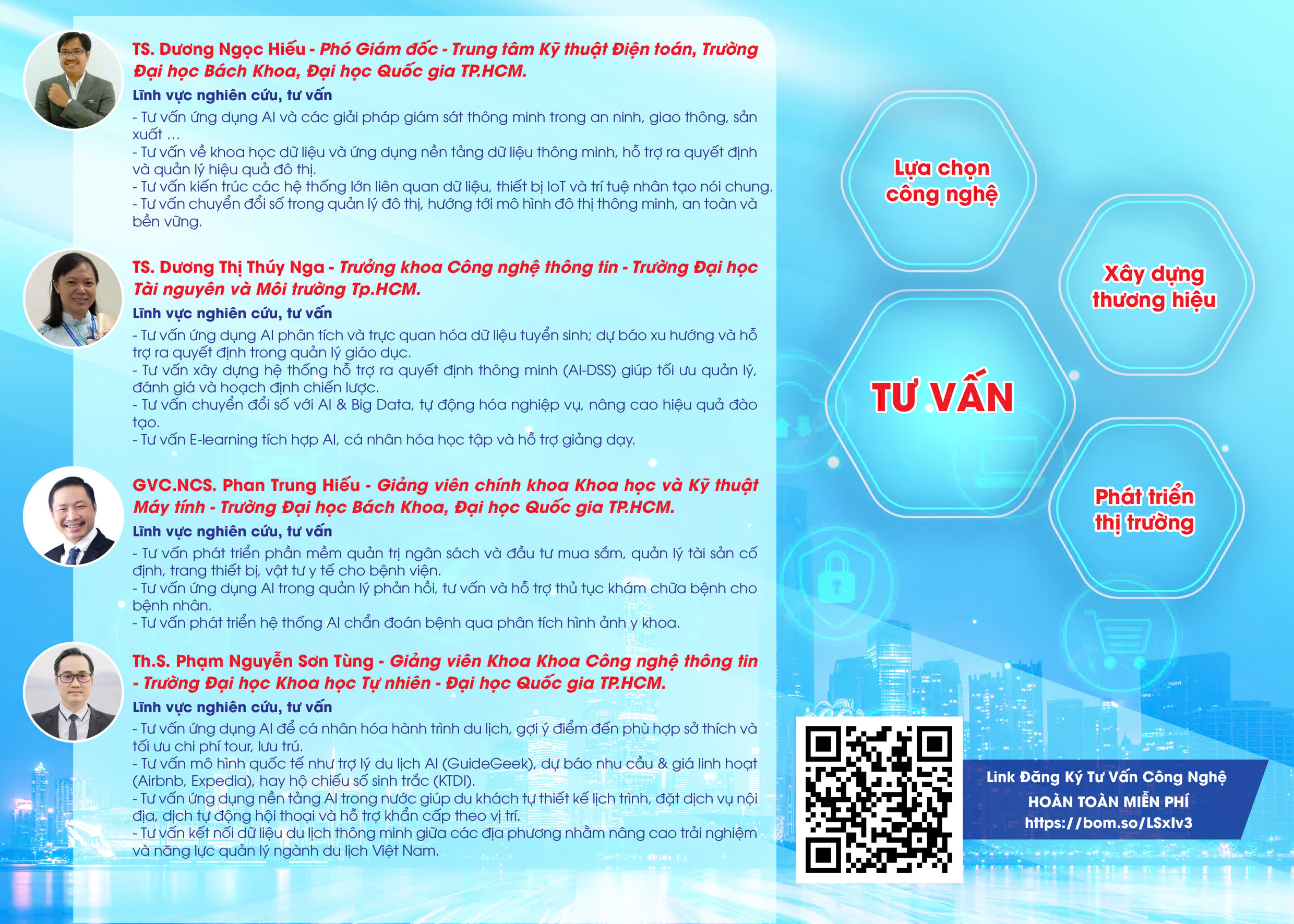 Năm nay, khu tư vấn được tổ chức theo mô hình không gian mở, tạo điều kiện để người tham dự dễ dàng tiếp cận và trao đổi trực tiếp với các chuyên gia đến từ các viện, trường và đơn vị nghiên cứu. Nội dung tư vấn trải rộng trên nhiều lĩnh vực then chốt của chuyển đổi số, hình thành nên một hệ sinh thái tư vấn liền mạch, giúp các đơn vị tiếp cận đúng chuyên gia, đúng nội dung và đúng nhu cầu.