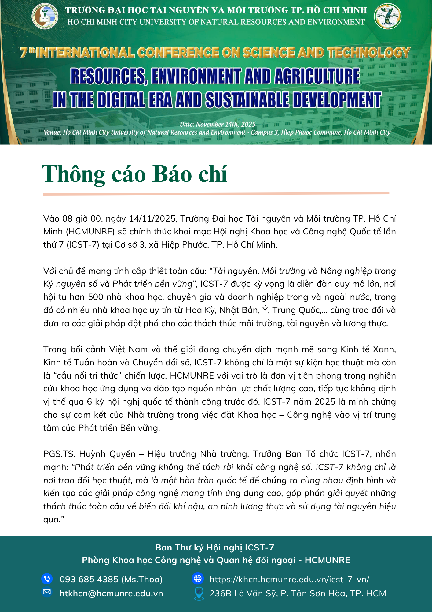 Là trường đại học công lập duy nhất phía Nam trực thuộc Bộ Nông nghiệp và Môi trường, trải qua hơn 45 năm xây dựng và phát triển, Trường Đại học Tài nguyên và Môi trường TP. Hồ Chí Minh đã khẳng định được vị thế trong hệ thống giáo dục đại học đào tạo nguồn nhân lực có trình độ trong lĩnh vực công nghệ, quản lý tài nguyên, đảm bảo môi trường sạch cho phát triển bền vững và cùng thế giới ứng phó với các vấn đề biển đổi khí hậu trên toàn cầu.